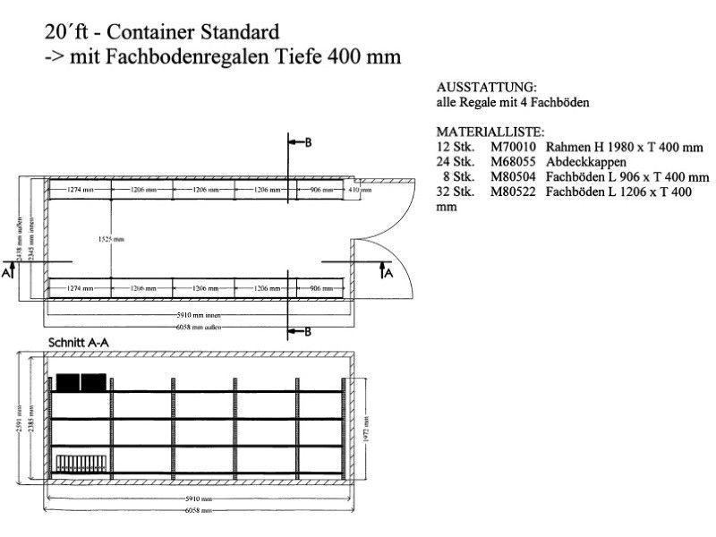 Shelf racking for 20`DV sea containers (DIN EN 15635)
